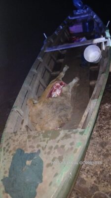 En el marco de los operativos conjuntos, efectivos que patrullaban el río detectaron una embarcación de madera con motor, en la que se transportaban cortes de carne vacuna, entre ellos una paleta y dos cuartos, procediendo inmediatamente a su secuestro.